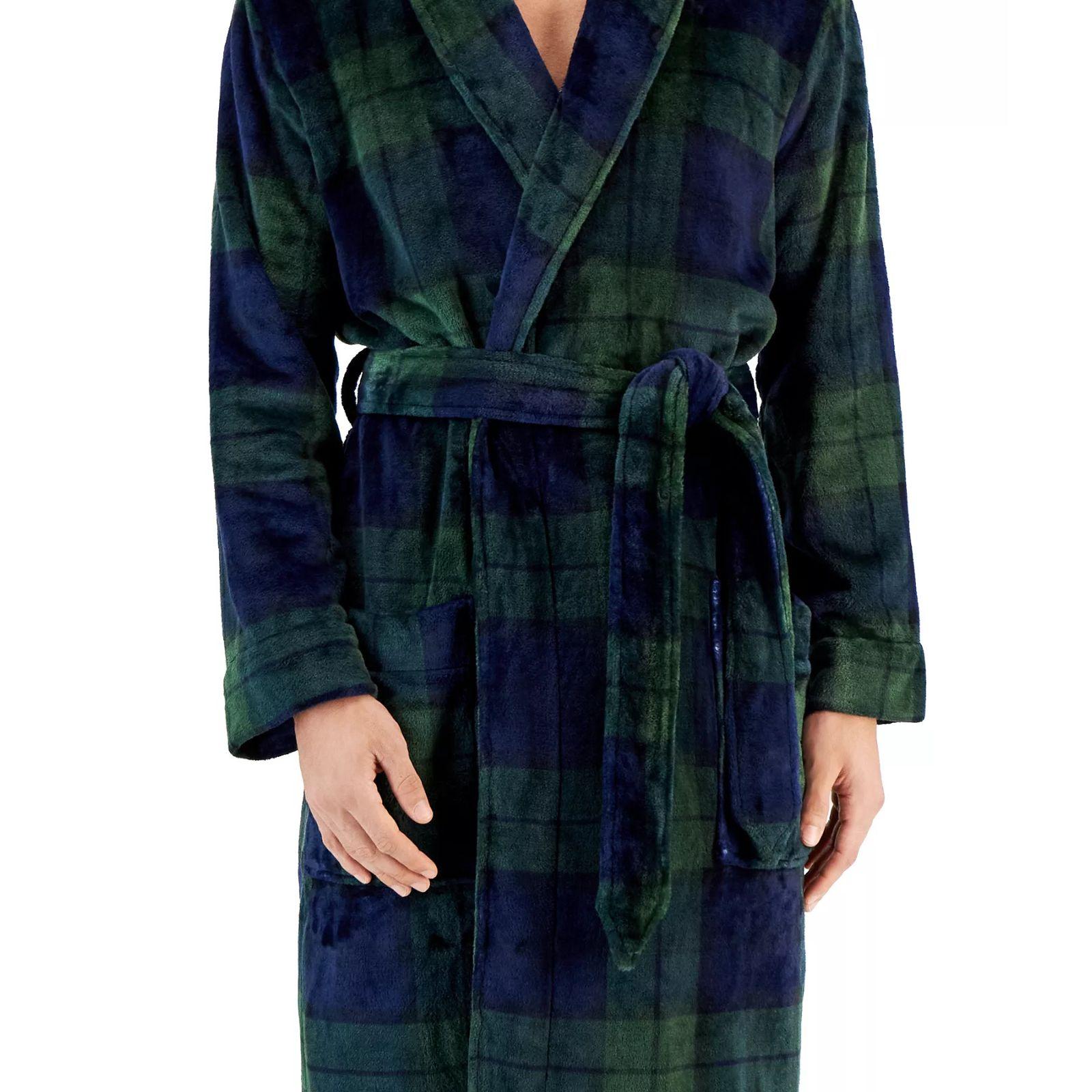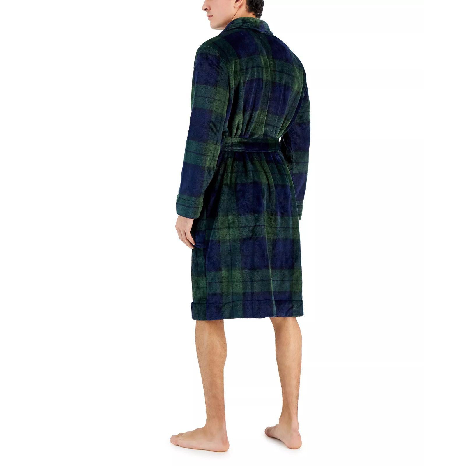 Effortlessly dress up your at-home lounge style with the Black Watch tartan plaid and sumptuous, plush feel of this pajama robe by Club Room. MSRP $60.00