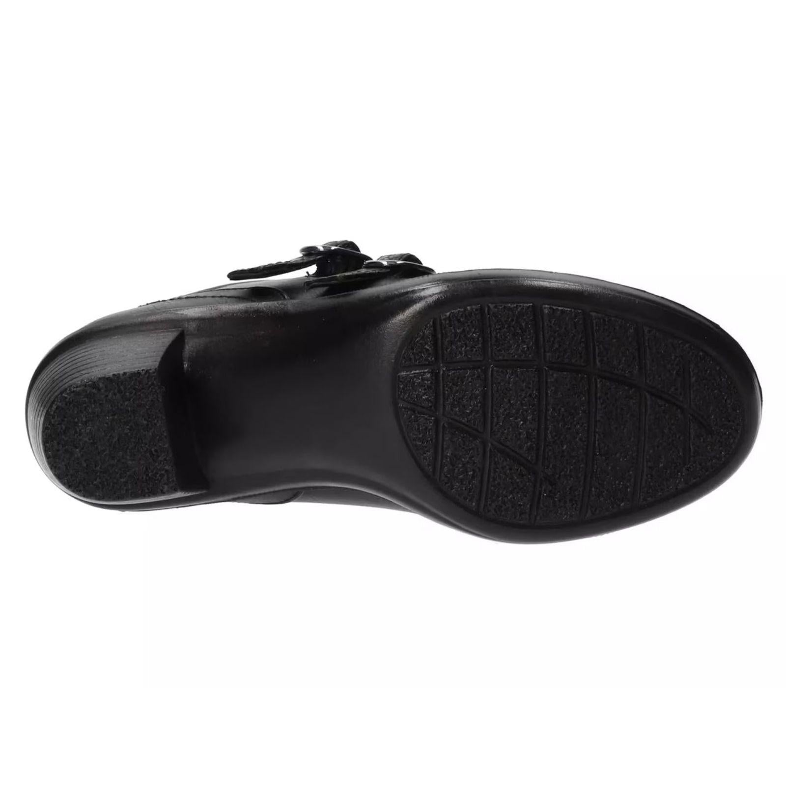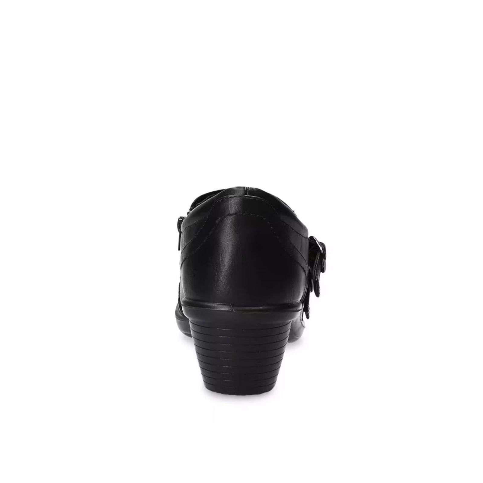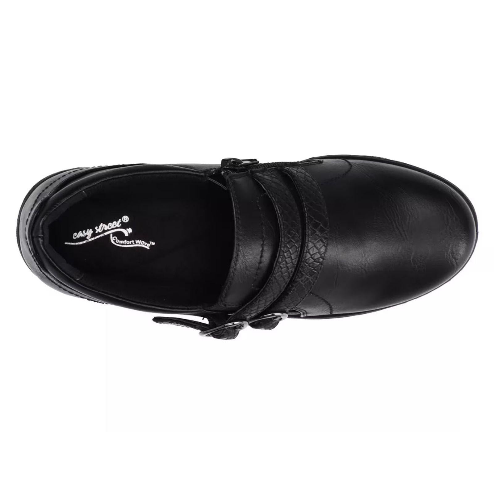These Stroll ankle boots from Easy Street are designed to enhance your day with both style and comfort. The unique double buckle ornamentation with a faux snake overlay add a little pop to any outfit. The lightweight Comfort Wave construction, Easy Motion ultra light insoles and stretch for fit features help create the ultimate comfort experience.