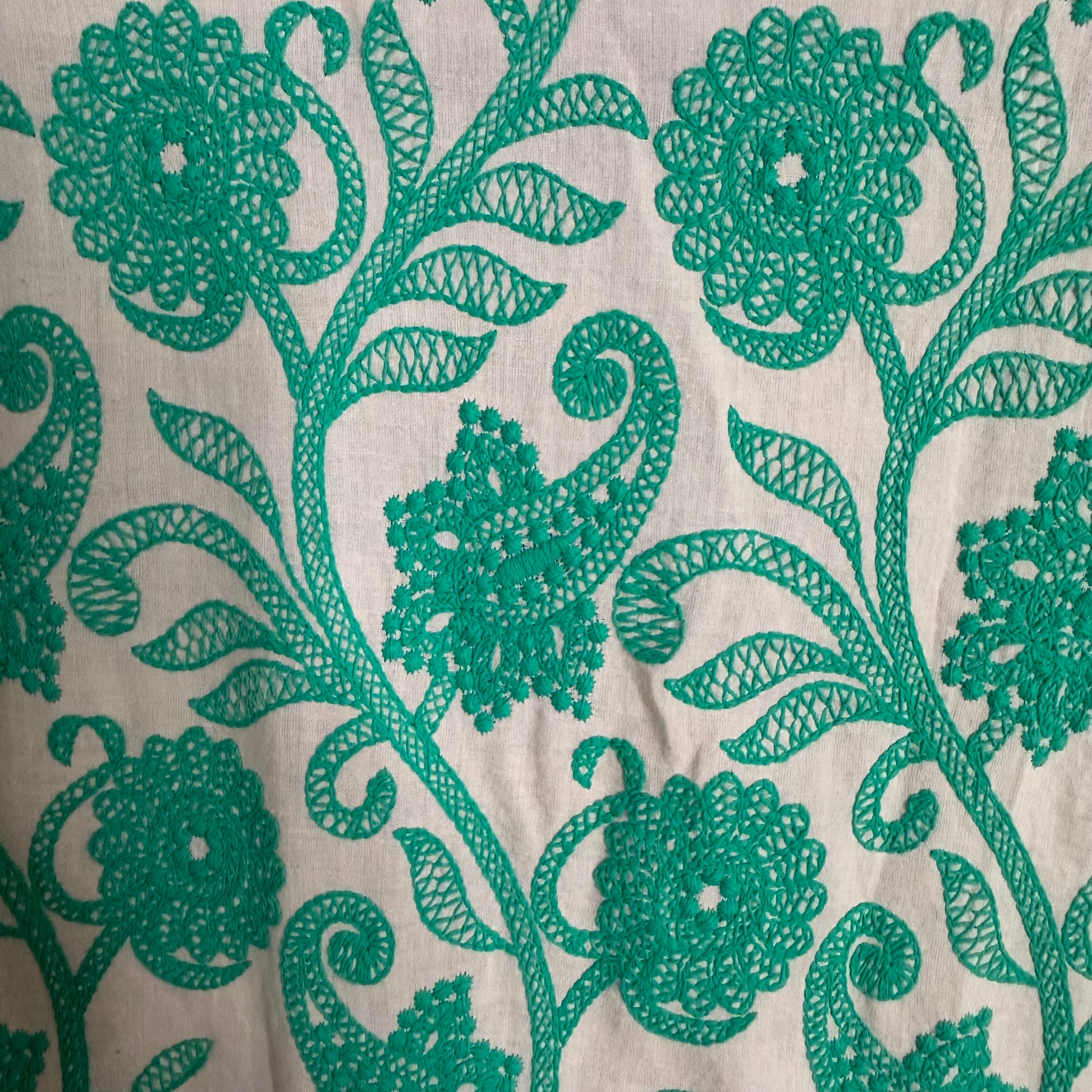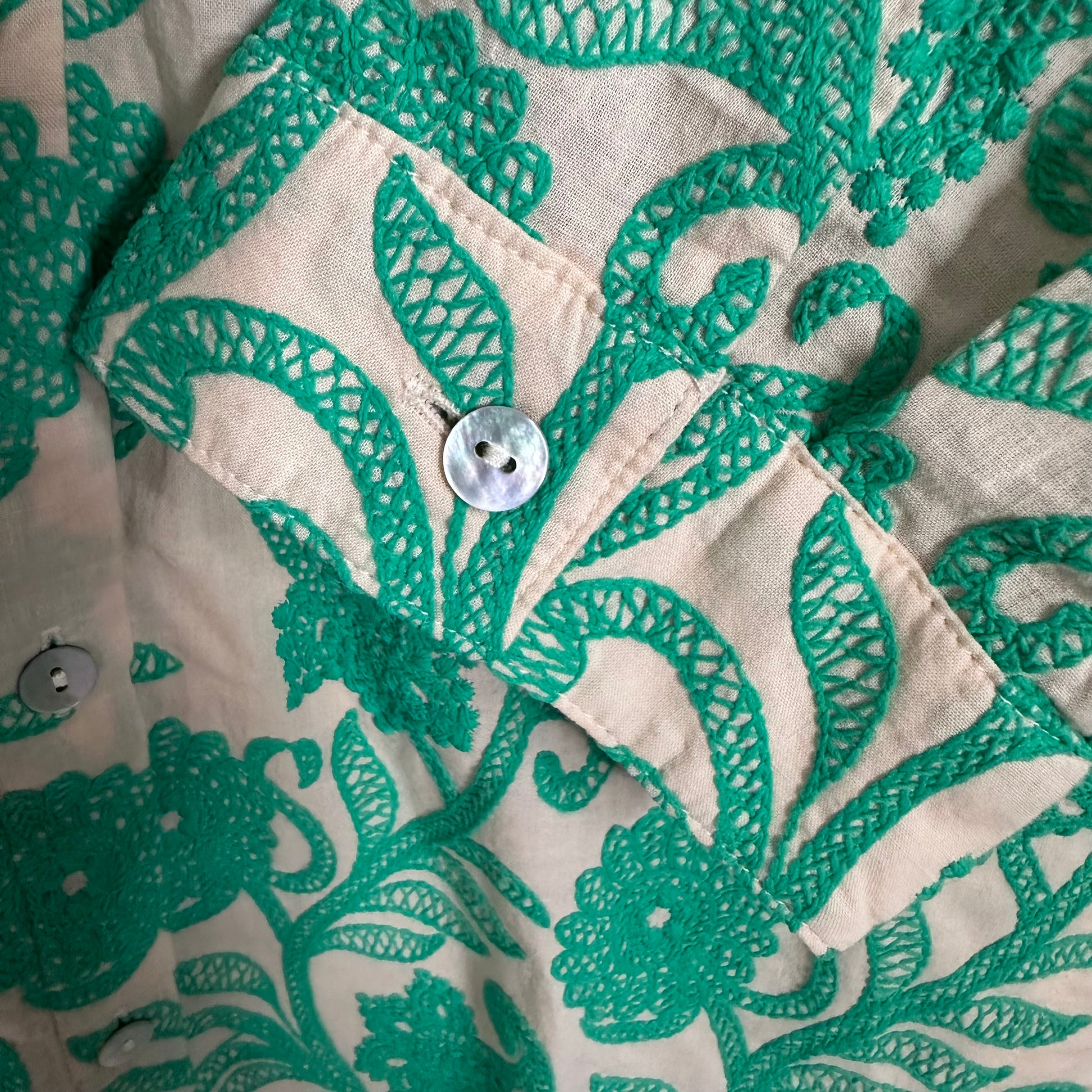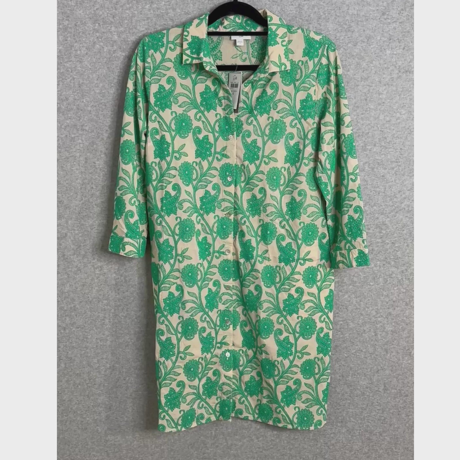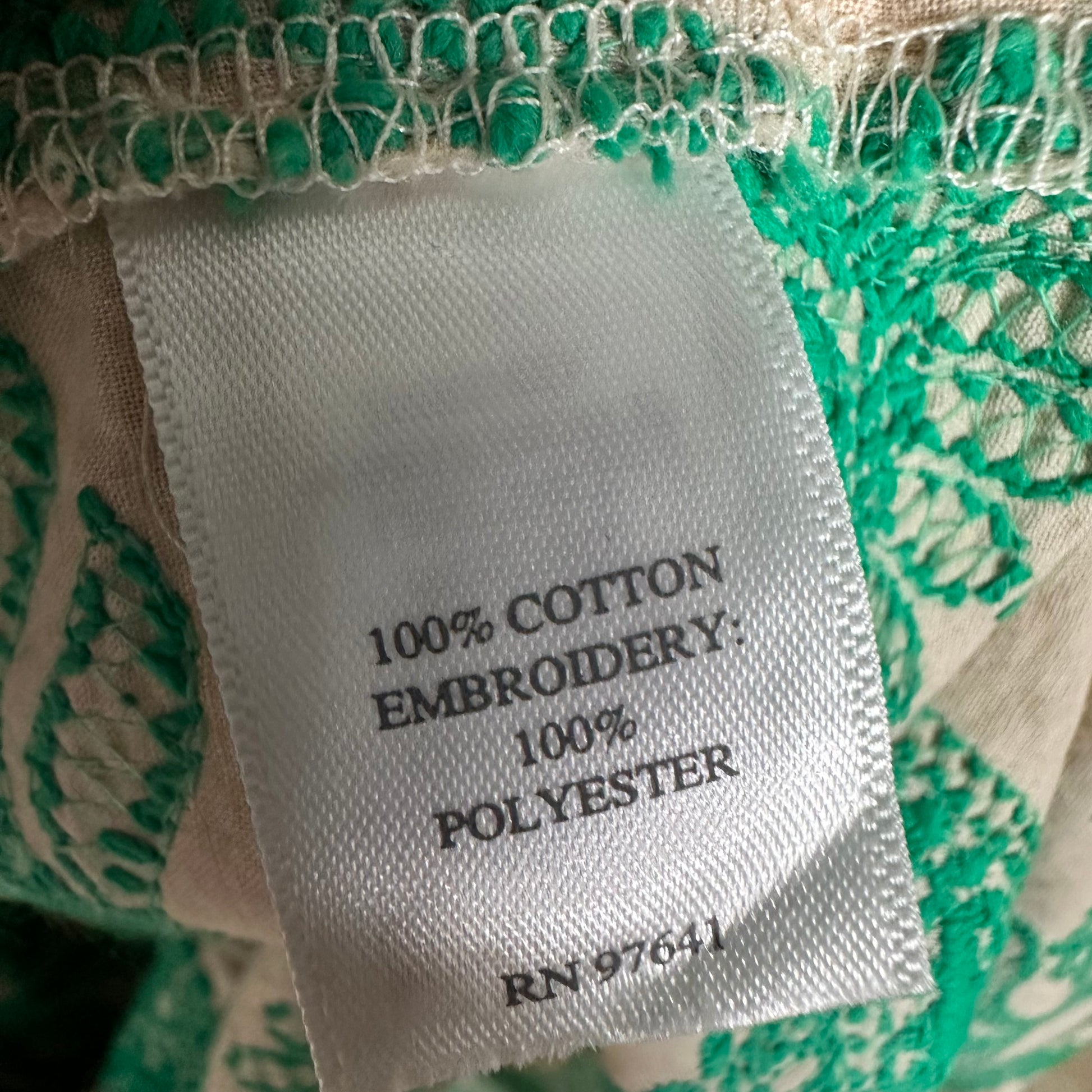 J. Jill Embroidered A-Line Midi Shirtdress Women's Small 3/4 Sleeve Pockets French Beige & Aquamarine