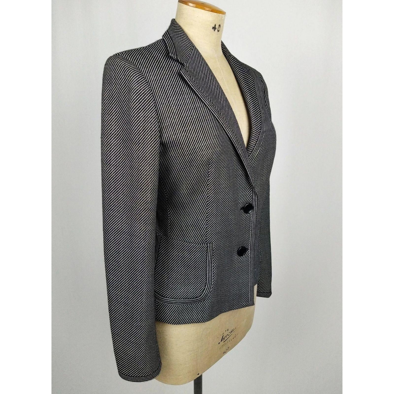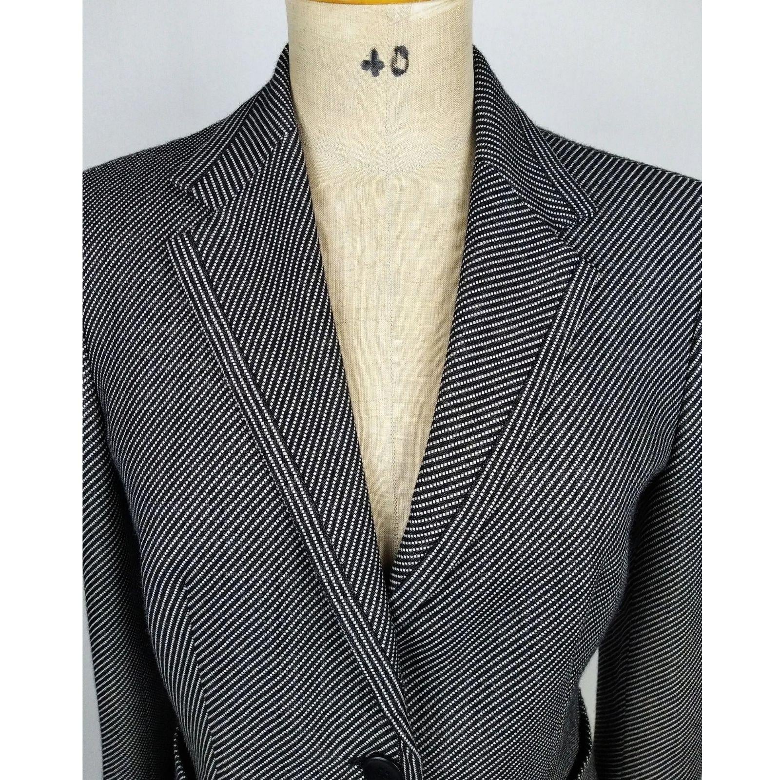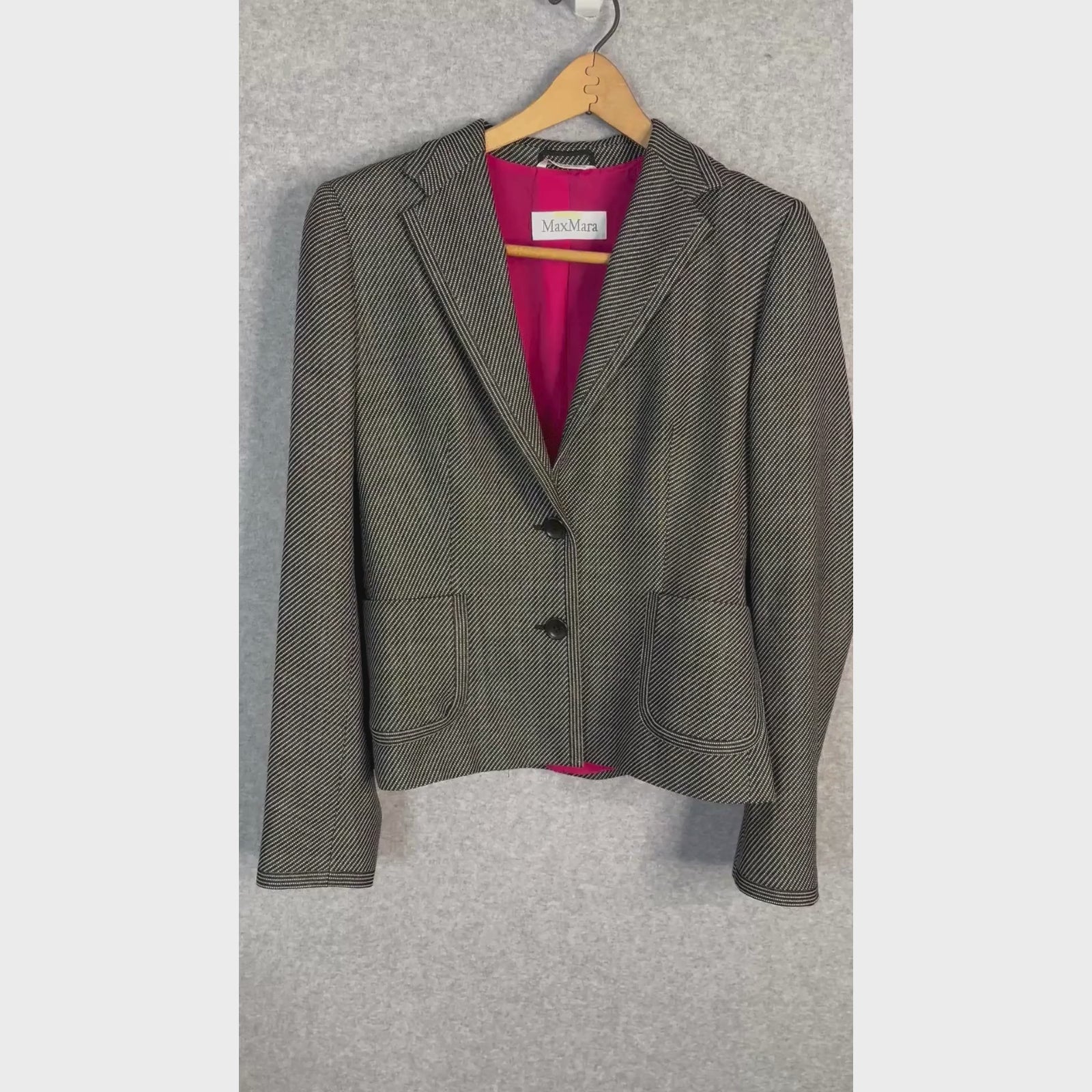Max Mara fitted jacket. Made in Italy from a black & white woven pattern of wool, silk, viscose blend fabric.
