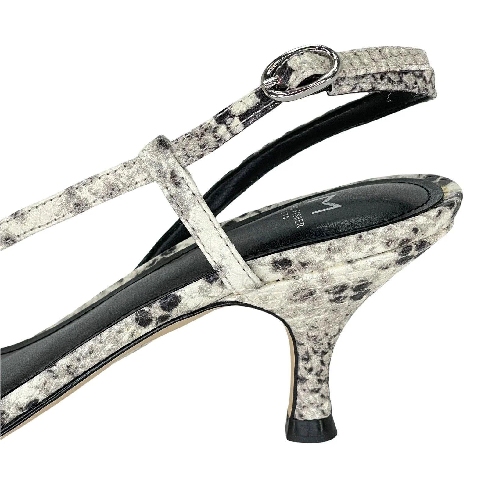 MARC FISHER Womens Black snake asymmetrical, padded gove, square toe, kitten heel, buckle Leather slingback sandal 7.5 M